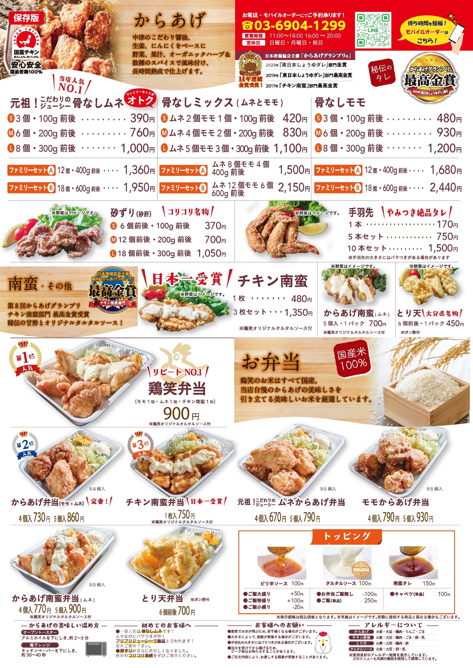 からあげ専門店「鶏笑 高島平店」のメニュー