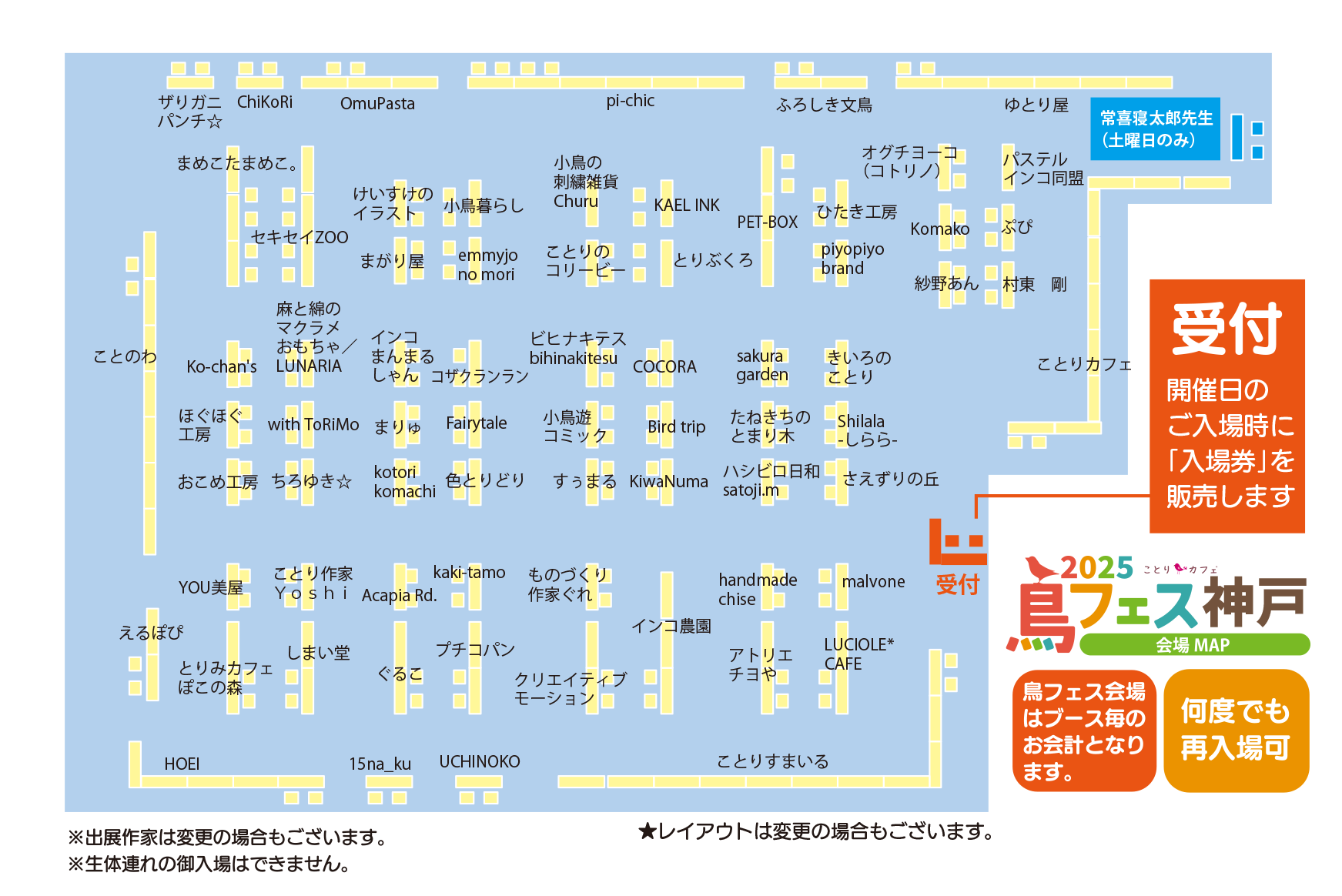 全国から人気クリエイターが集合し、色とりどりの小鳥モチーフの作品や小鳥のおもちゃなどを対面販売。鳥かご国内シェア圧倒的の「豊栄金属工業株式会社」(https://hoei-cage.co.jp/)、による小鳥のご飯も販売。いいインコの日として知られる11月15日(土)には、特別ゲストとして人気漫画家の常喜寝太郎先生(Xアカウント @netarouTsuneki)によるサイン本販売(ご購入者にはペットの似顔絵を描きます)も予定♪