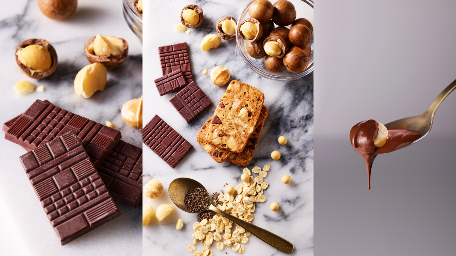 マカダミアナッツは、植物性の良質な脂質であるオレイン酸やパルミトレイン酸を豊富に含み、からだにやさしいナッツとして知られています。チョコレートの濃厚なコクと重なり合うことで、上品で満足感のある味わいに仕上がりました。