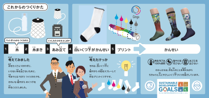 内容: 学生自らがデザインした靴下をチームごとに販促し販売数を競い合う"
