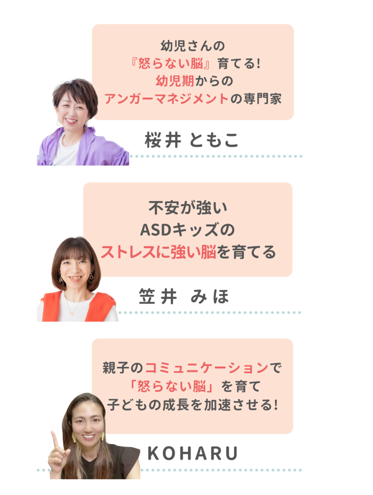 Nicotto!ライブのパネリストは、発達障害グレーゾーンの子を育てる実体験を持ち、脳科学に基づいた子育てを実践してきた専門家たちです。子育ての常識をアップデートし、子どもの可能性を広げる具体的な声かけや対応策を提案します。ライブでは、今すぐ役立つ対応法とあわせて、子どもの脳を育てることで根本的に困りごとを解決する視点をお届けします。