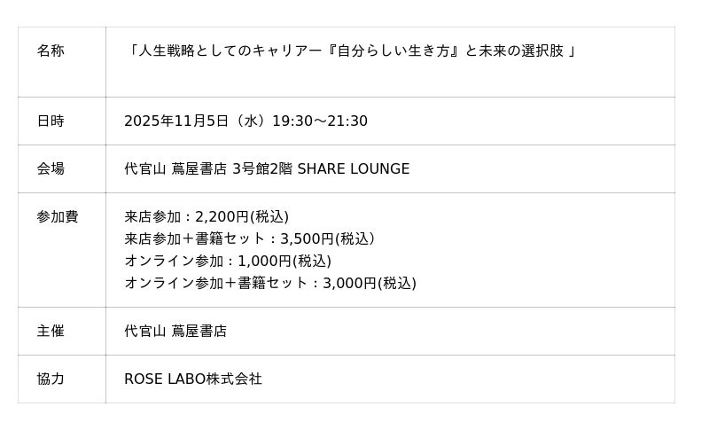 現代は「キャリア=職業選び」ではなく、「どう生きるか」という人生戦略そのものが問われる時代。情報や選択肢があふれている中で、"自分で選び、描く力"が求められています。