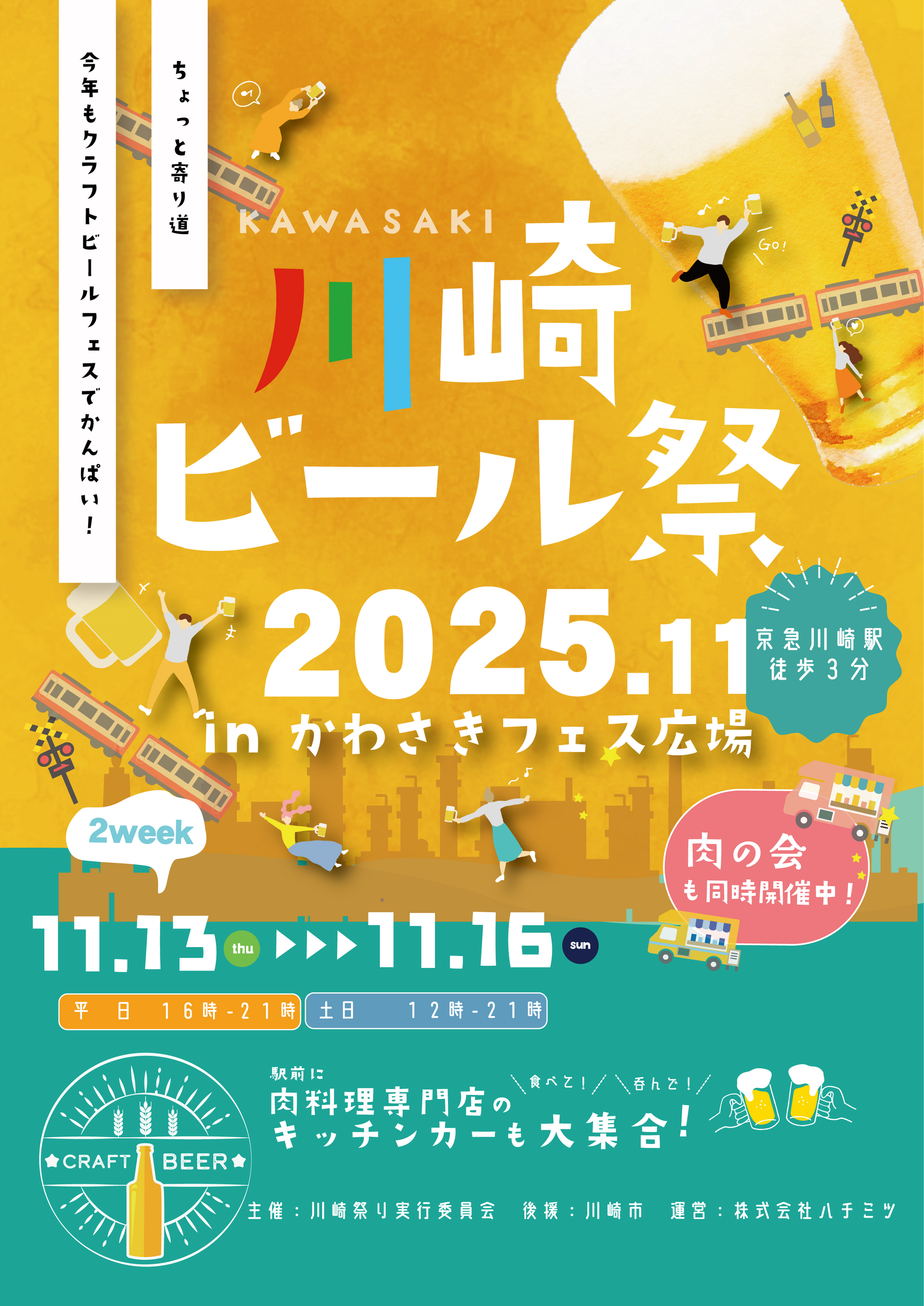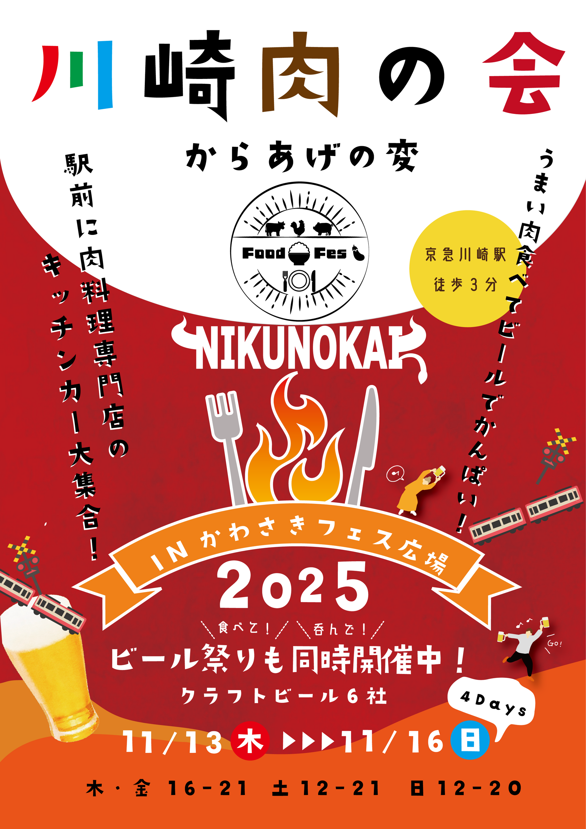 川崎駅前に"肉の祭典"がやってきます!「川崎肉の会 2025.11」は、前回のジューシーなステーキや香ばしい焼き鳥、ボリュームたっぷりのハンバーグやソーセージなど、肉好きにはたまらないグルメが勢ぞろいするイベントから、から揚げ主体の揚げ物をメインとした人気のキッチンカーが大集合!!