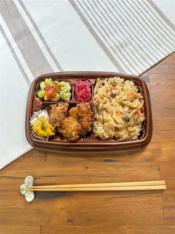 <学生コメント> 秋の味覚が感じられ、野菜も摂れるお弁当です。