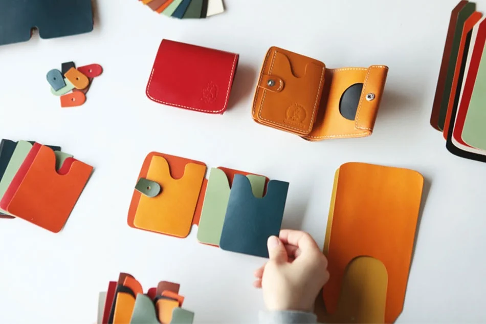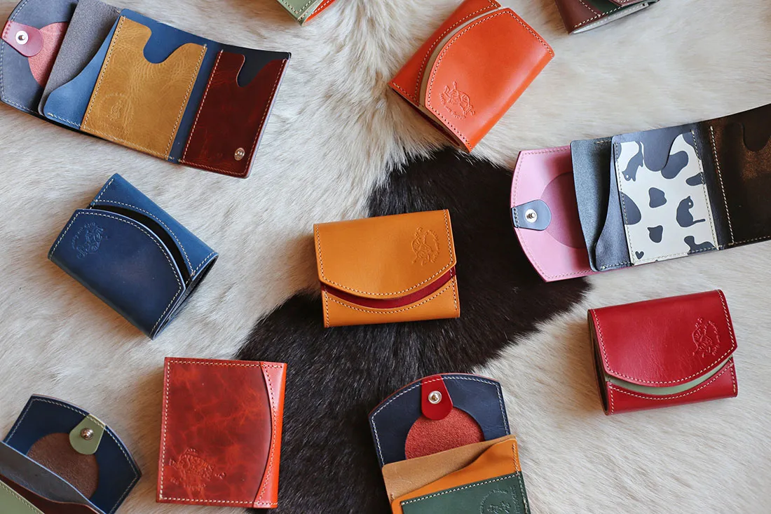 カラーオーダーで制作できるアイテムは「小さいふ」と呼ばれるミニ財布をはじめ、名刺ケースやキーケースなどの革小物もつくることができます。