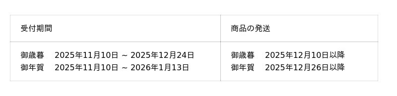 今年お世話になった方へ感謝を込めて、年始の大切な方へのご挨拶に。11月10日より予約受付開始。ご予約は店頭にて承ります。