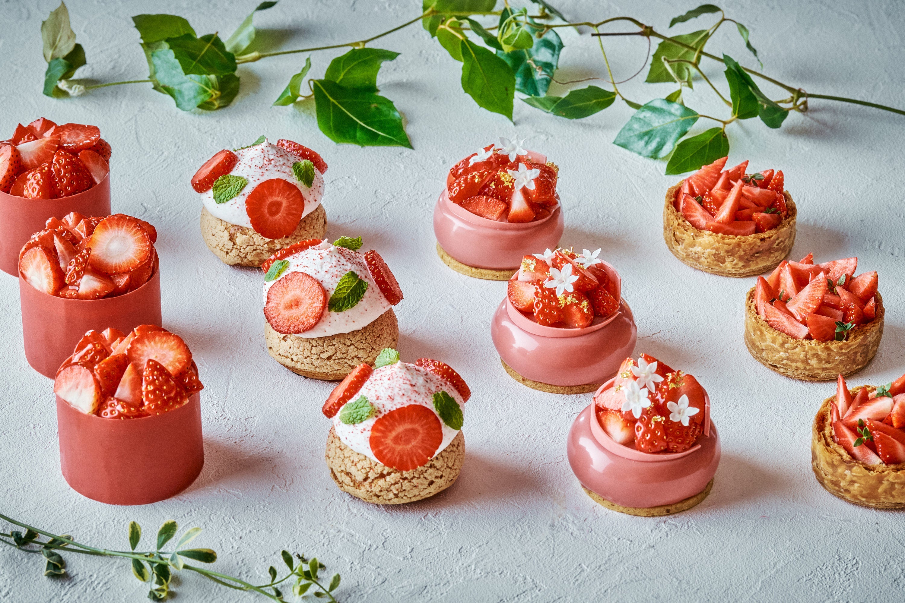 ペストリー ショップでは、旬を迎える苺を主役にした限定スイーツコレクション「White Winter, Red Heart」をご用意いたします。冬の季節のはじまりに感じる高揚感を、真っ白な冬の世界に映える苺の赤で表現しました。苺シロップを染み込ませたジェノワーズに、厳選した国産苺と口どけのよいシャンティを重ねた上品な味わいの「プレミアム ストロベリーショートケーキ」、ローストしたパプリカと苺の意外な組み合わせが生む深みが印象的な「ストロベリータルト」、そして、オリーブオイルで焼き上げた軽やかなシューとハーブジュレの爽やかな余韻が広がる「ストロベリー&ミントシュー」など、それぞれ異なるアプローチで苺の魅力を引き出しました。