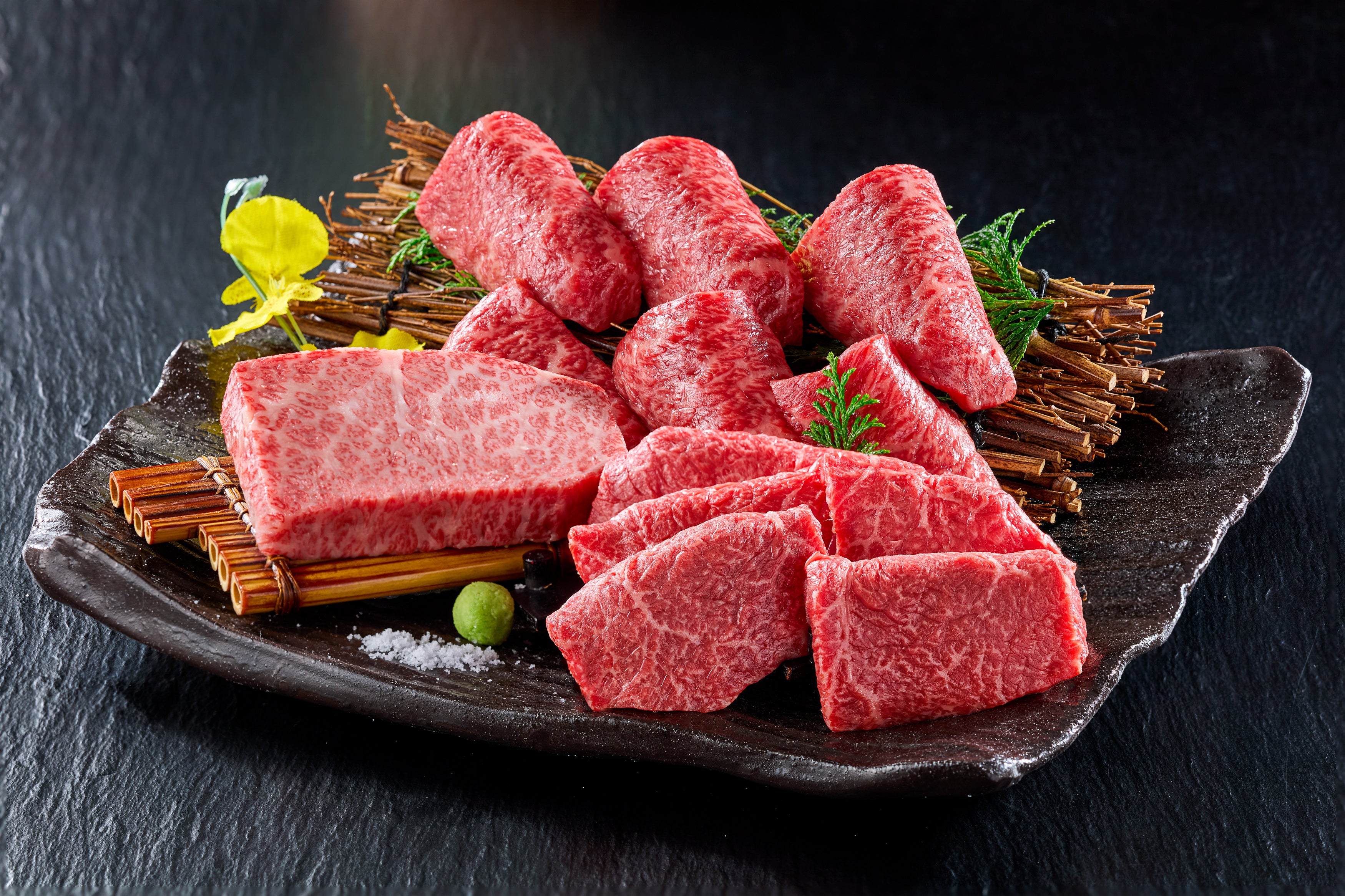 ランプは腰からお尻にかけての部位で脂肪が少なく、霜降りと赤身のバランスが絶妙で、赤身の旨みをしっかりと感じることができ、柔らかさの中にも適度な弾力も楽しめます。