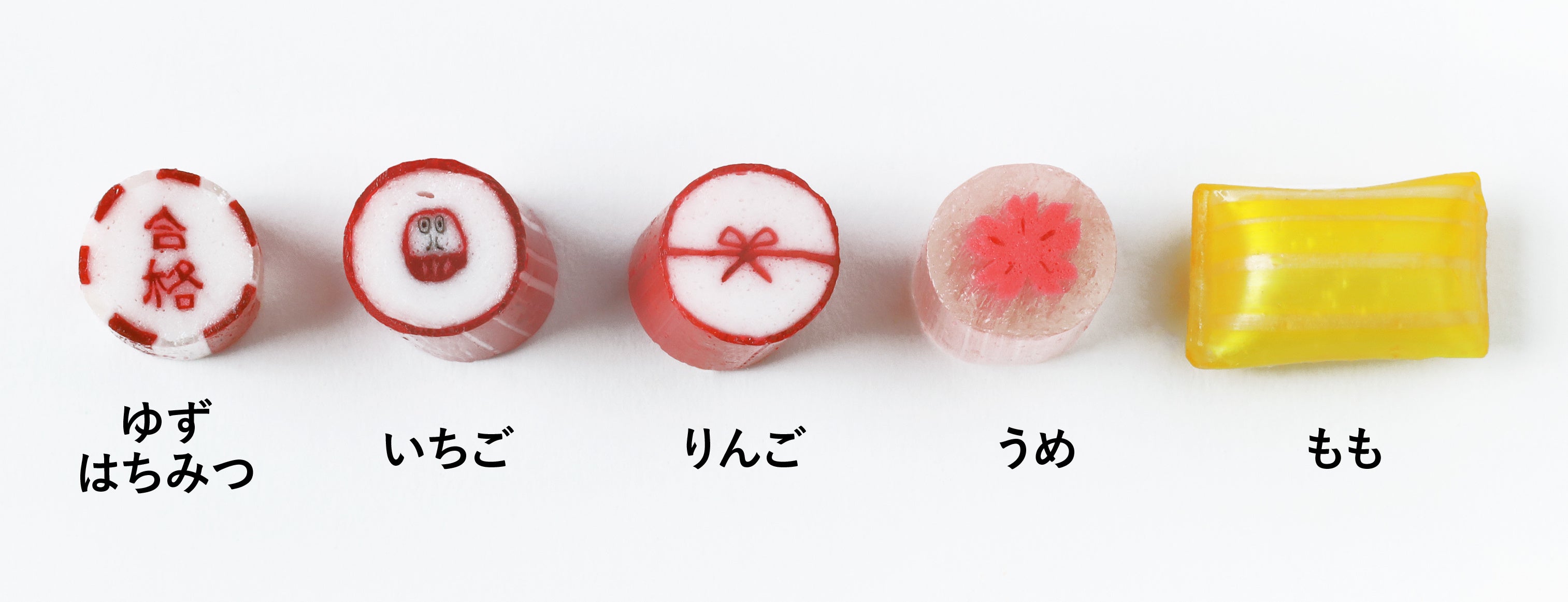 縁起の良い5つの味わいをひとつにまとめた華やかなキャンディは、受験勉強中のひと息にも、合格後のお祝いにもぴったりのアイテムです。