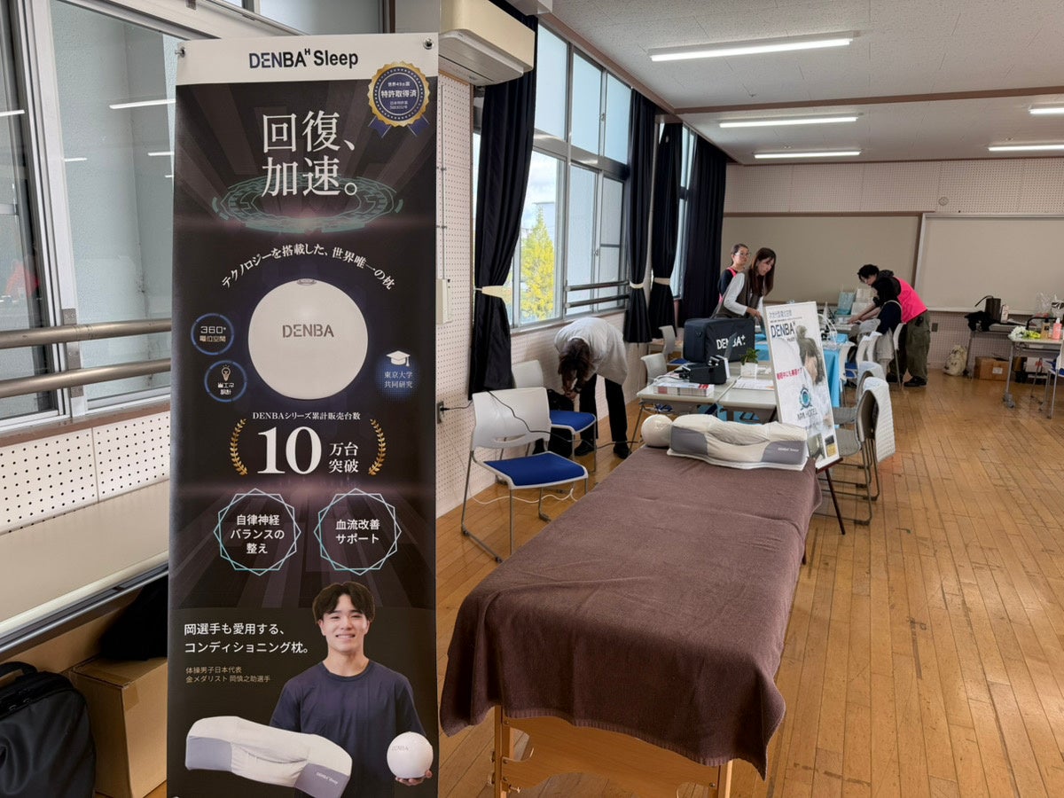 化粧品やアロマ商品を展開する株式会社フォーシーズHD(所在地:福岡市中央区、代表取締役社長: 寺田智美、東証スタンダード市場 証券コード:3726)は、2025年11月3日(祝)に、愛知県豊明市にある「カラット(旧唐竹小学校)」にて開催された「BUSH×TSUNAGU Market」にて「DENBA Sleep」の体験会を行いました。