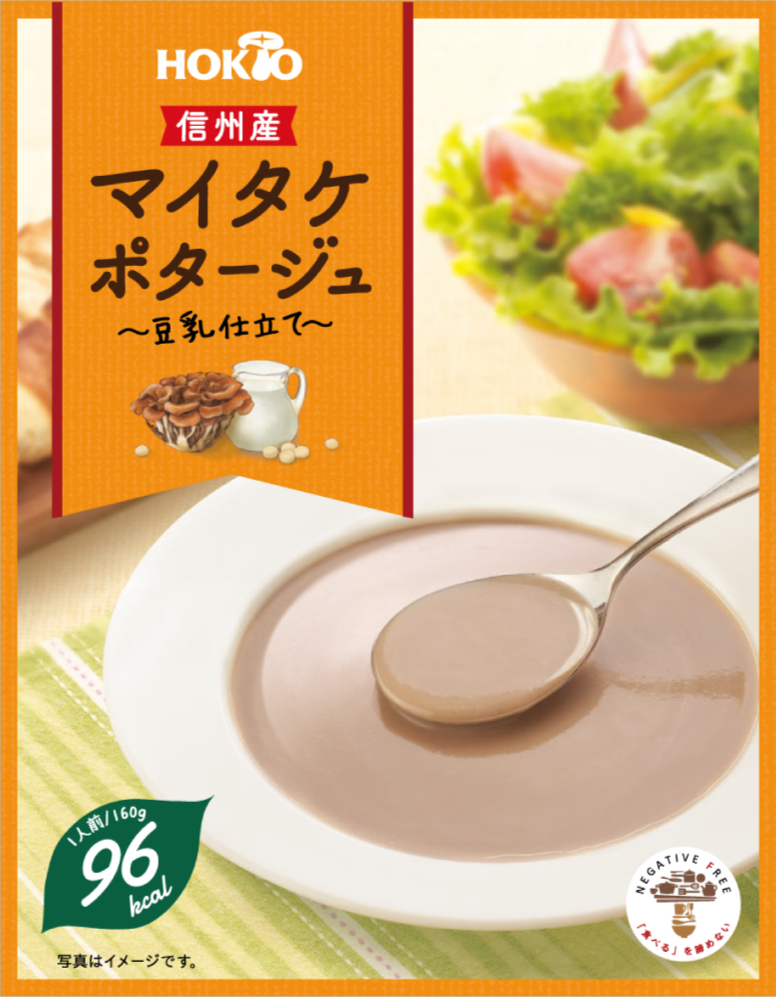 ■商品特徴 信州産マイタケをローストし、豆乳で仕上げた、96kcalの低カロリーなポタージュです。