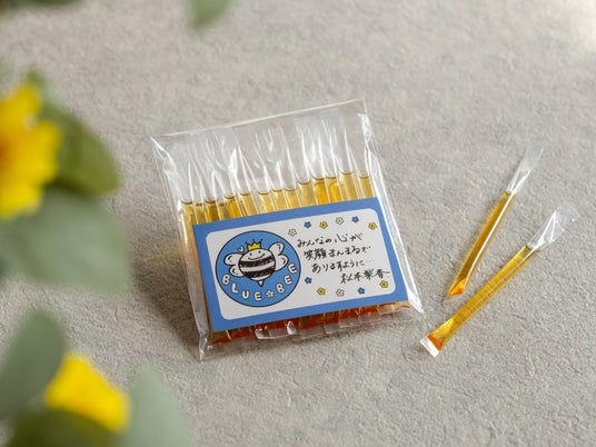 パッケージには、松本梨香氏が描き下ろしたキャラクター「ブルー・ビー」のイラストをあしらった限定デザインを採用しています。