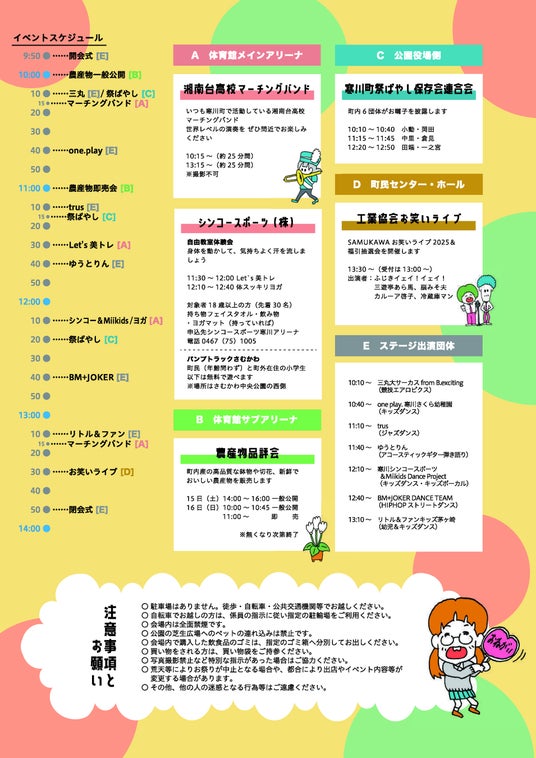 会 場:さむかわ中央公園、シンコースポーツ寒川アリーナ(寒川総合体育館)、寒川町民セン ター(ホール)