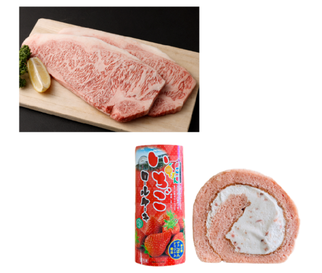 【コンプリート賞】[特産品セット] 芦北牛(サーロインステーキ200g×2枚)、いちごロールケーキ