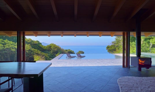 建築設計は、日本を代表する設計事務所「SUPPOSE DESIGN OFFICE」が担当。150平方メートル の建築と1,000平方メートル 超の敷地に、1日1組限定のプライベート空間を構成しています。海を望む水盤の上には"禅スペース"を設け、風や波音の中で瞑想やヨガが可能。また、敷地内にはサウナやウッドデッキも備え、五感で自然を感じながら"ととのう"時間をお過ごしいただけます。