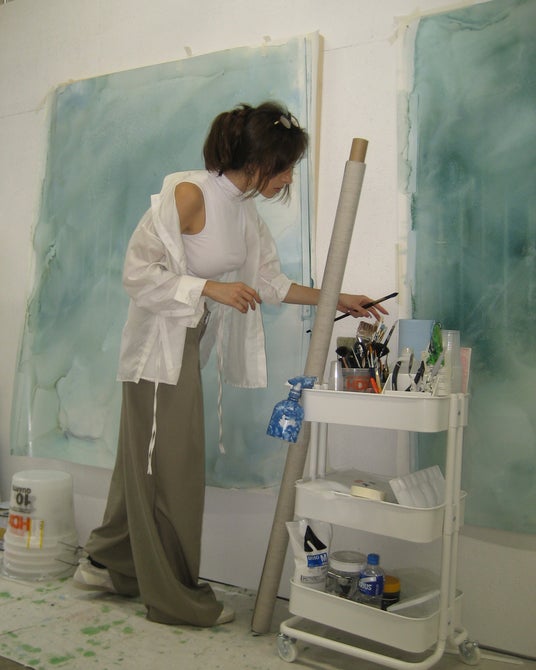 キムは本展の制作にあたり、京都でのアーティスト・レジデンスに滞在し、あえて創作の歩みをゆるめながら、ひと筆ごとの時間に深く意識を向けました。