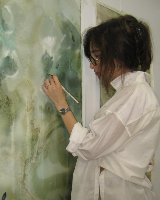 伝統的な技法と革新性を融合し、天然素材や金箔、トゥルムの砂浜の光景から着想を得た独自の"トップストーン技法"を駆使する。時間の体積とともに「強さ」と「委身」のあわいにある静かな対話を誘う。
