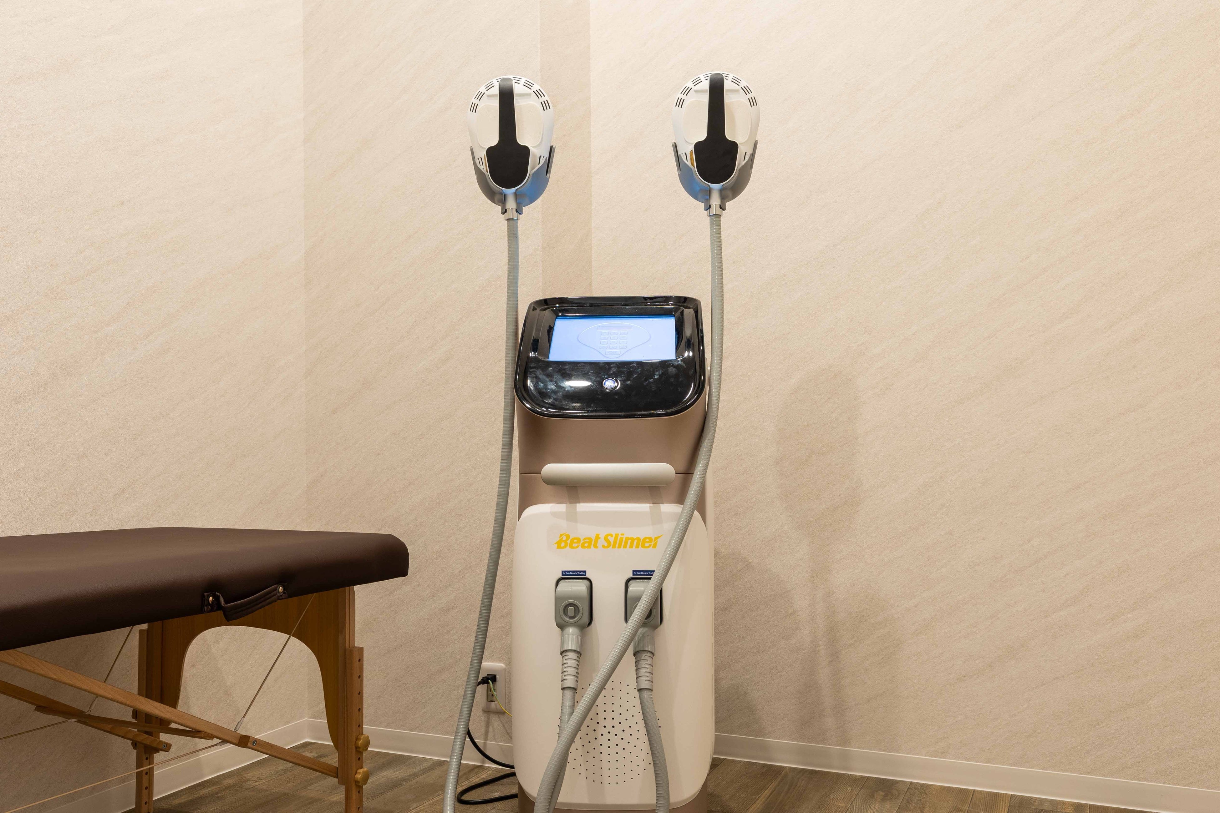 服を着たまま座るだけで「筋肉+脂肪」両方にアプローチできます。なかなか鍛えることのできない骨盤底筋や下半身を電磁パルスの刺激で座るだけで鍛えることができる美容マシンです。
