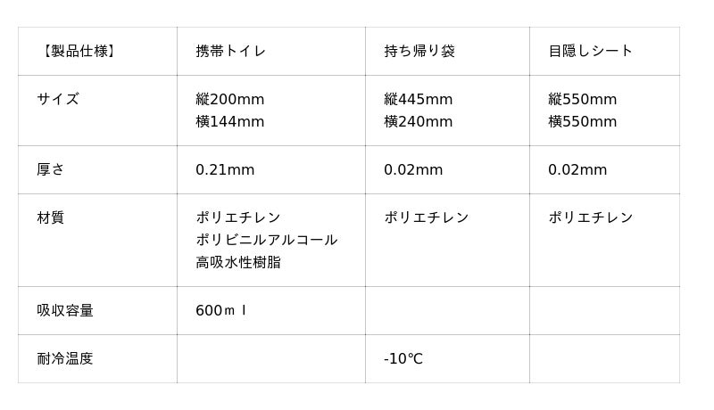 高速道路での渋滞時など、いざという時に安心してご使用いただけます。吸収容量は600mlで大人1回分をしっかり固め、交通渋滞やレジャーシーンで活躍します。災害時の備えとしてもおすすめです。