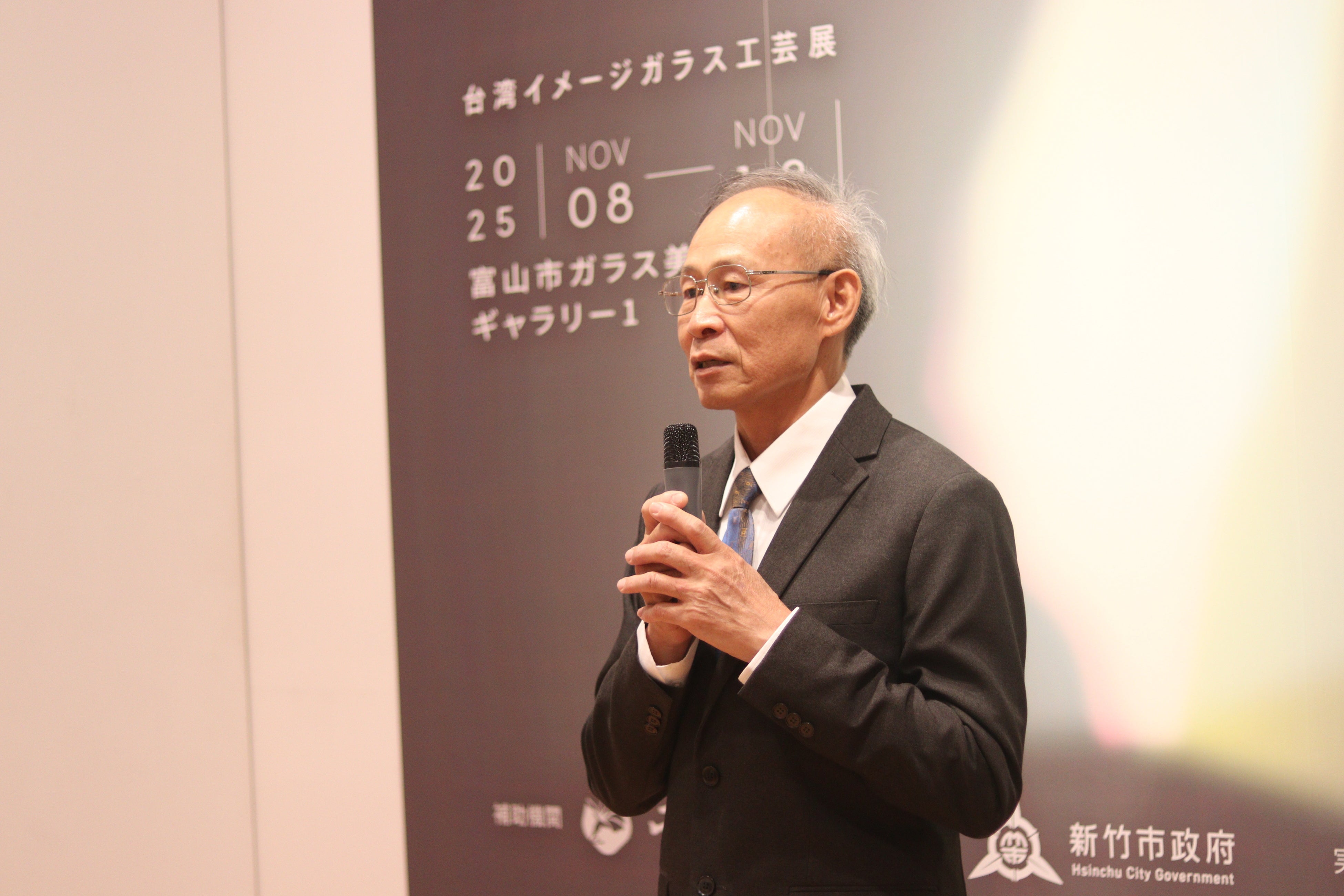 また、富山と新竹市はガラス産業の発展という歴史的な共通点を持つことに触れ、新竹市も現在、工芸・芸術といった高付加価値の領域への発展に尽力していると説明。1999年のガラス工芸博物館設立や、日本の支援を得て開催してきた「国際ガラス芸術フェスティバル」にも言及しました。ガラス産業100年の節目に富山市で展覧会を開催できることは望外の喜びであり、今後は富山市との継続的な協力メカニズムを構築し、日台双方のアーティストが共に成長していくことを強く願っていると結びました。
