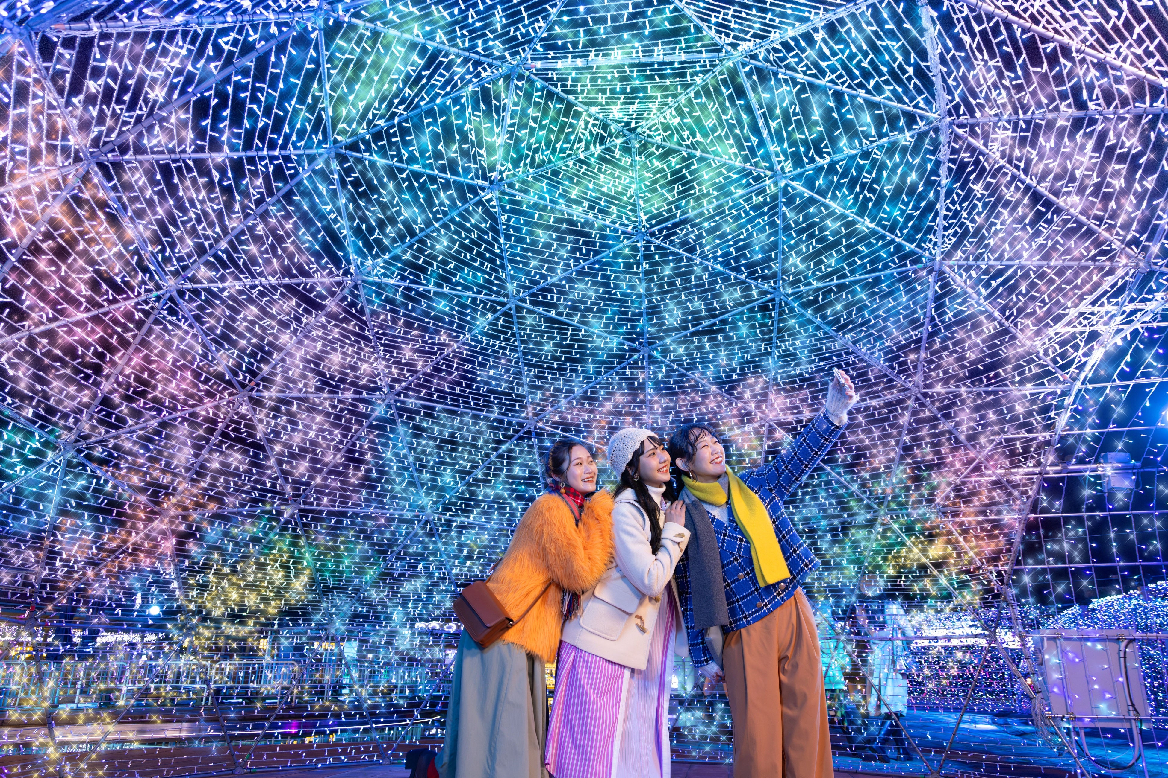 100万球のイルミネーションアーチ「幸運のレインボーアーチ」