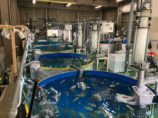 株式会社ベルデアクア 一宮ラボの様子 高い透明度と陸上養殖特有の臭みのない飼育水が特徴。