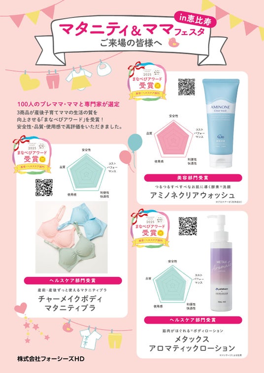 化粧品やアロマ商品を展開する株式会社フォーシーズHD(所在地:福岡市中央区、代表取締役社長: 寺田智美、東証スタンダード市場 証券コード:3726)は、2025年11月8日(土)東京・恵比寿にて、株式会社中日アド企画が運営する医師・専門家が監修し妊娠・出産・育児を楽しく学ぶWEBメディア「まなべび」開催の、「第2回まなべびマタニティ&ママフェスタ」に参加しました。