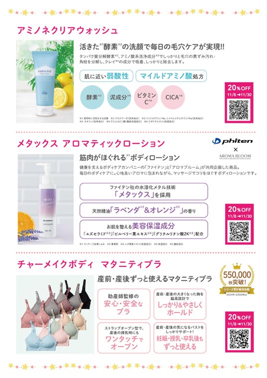 9月22日(月)に「まなべび」が主催の「まなべび アワード2025」において、当社グループが展開する3つのブランドから「キュア アミノネクリアウォッシュ」「アロマブルーム メタックス アロマティックローション」「チャーメイクボディ マタニティブラ(3枚セット)」が「まなべびアワード2025」を受賞しました。