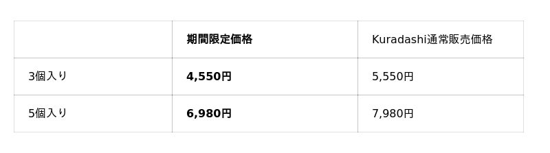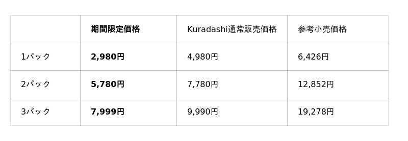 ・販売サイト : https://kuradashi.jp/products/8703234736277