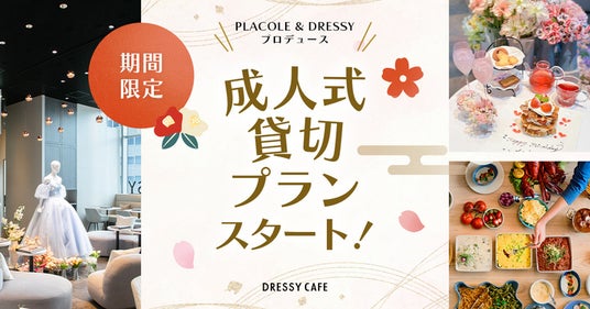 「PLACOLE & DRESSY」ブランドを展開する、冒険社プラコレ(本社:神奈川県鎌倉市、代表取締役CEO:武藤功樹)は、プロデュースするウェディングのテーマパークカフェ『DRESSY CAFE』名古屋店にて、成人式貸し切りパーティーに最適な貸切パーティープランの予約受付を開始いたしました。
