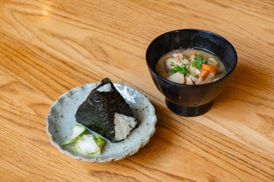 脱炭素農法米を使用したおむすびと大崎町産の食材を使用した豚汁