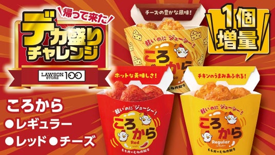 株式会社ローソンストア100(神奈川県川崎市)が運営する「ローソンストア100」(611店舗/2025年10月末現在)は、新ストアコンセプト「あたらしい・おいしい・うれしい」の「おいしい」、「うれしい」の一環で、昨年11月に実施し大変ご好評いただいた「デカ盛りチャレンジ」と「1個買うと1個もらえる」企画を、2025年11月19日(火)から12月2日(月)までの14日間実施します。