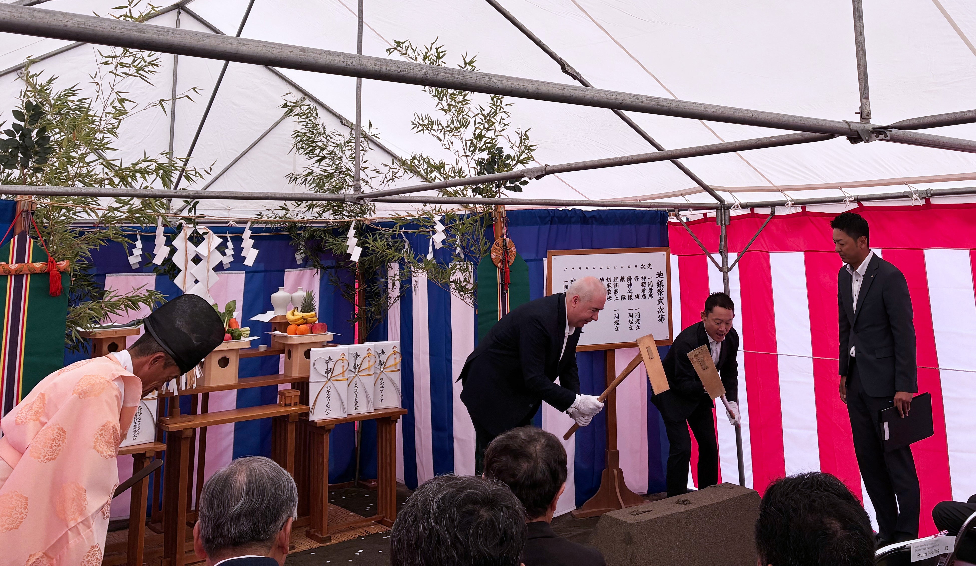 四季を通じ、雄大で美しい情景が広がる長野県・白馬村。その白馬村の主要別荘エリアの一つであるエコーランド地区に位置する「カッシーア・白馬(仮称)」は、近隣に各スキー場を回遊するバス停もあり、交通の利便性の高い場所に位置しています。全客室にキッチン、バルコニー等を備え、ホテルとレジデンスの良さを兼ね備えています。ご家族やご友人グループでの1泊から長期のご滞在にも最適です。2025年10月1日 地鎮祭の様子