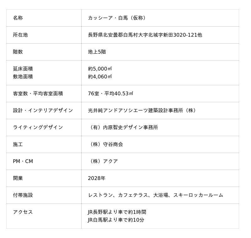 2028年開業予定「カッシーア・白馬(仮称)」着工 「白馬エコーランド地区ホテル開発プロジェクト」ブランド決定