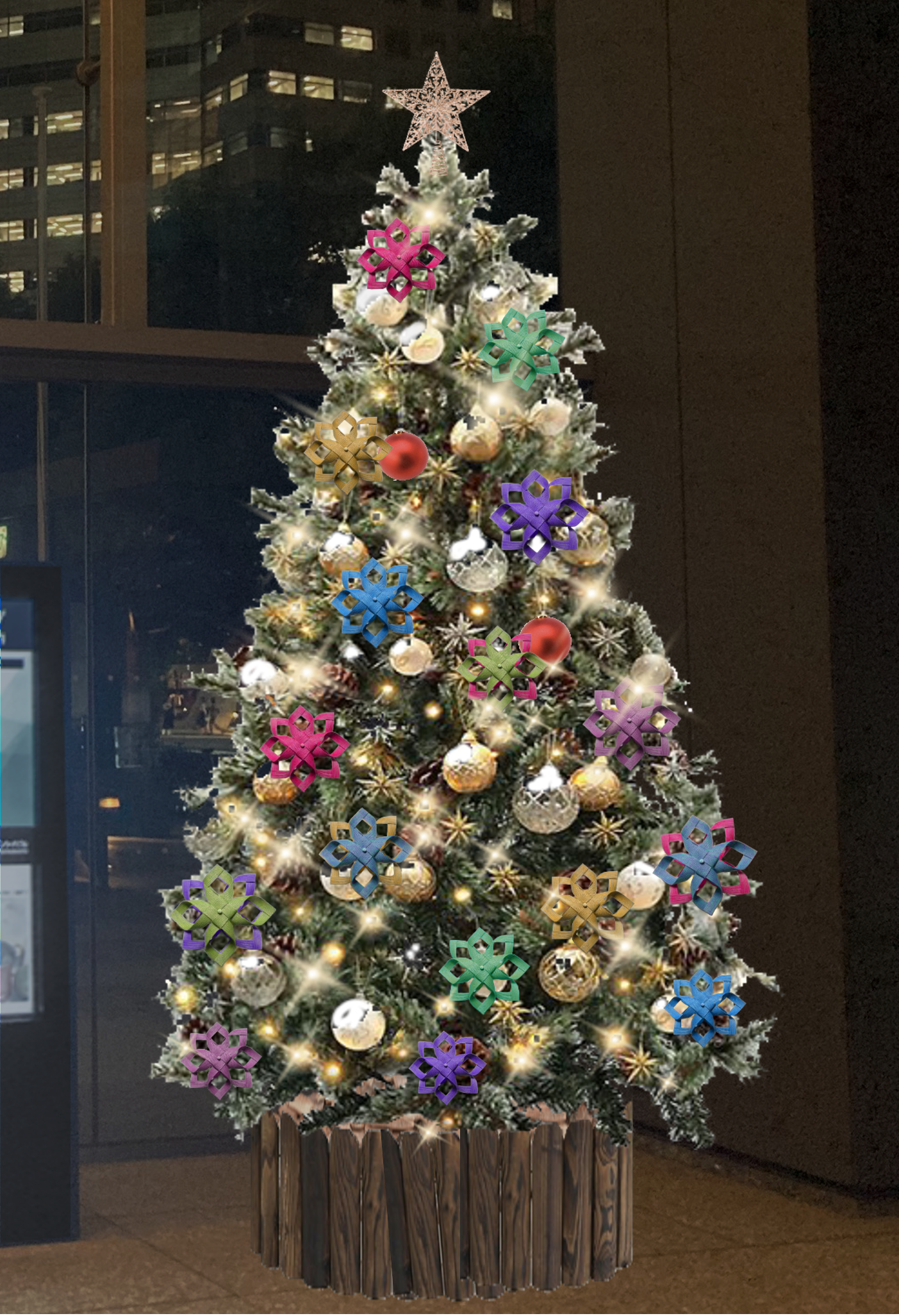 テーマは「未来を編む、サステナブル・クリスマス~多様性と調和のデザイン~」。今年開催された大阪・関西万博のテーマである「命輝く未来社会のデザイン」から「サステナビリティ」「多様性」というキーワードをもとに、サステナブル素材である"紙バンドクラフト"を活用しました。カラフルかつあらゆる形のオーナメントで装飾することにより多様性を表現しています。10月21日(火)に近隣のオフィスワーカーを対象にメインツリーに飾るオーナメント作りのワークショップを行い、紙バンドクラフトを用いて、参加者に色とりどりのオリジナルオーナメントを制作いただきました。今年は、千代田区にある「伸芽`Sクラブ学童 飯田橋校」に通う子どもたちに放課後プログラムの一環として制作をしてもらったオーナメントも、一緒にツリーを彩ります。