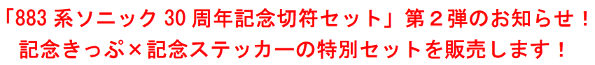 「883系ソニック30周年記念切符セット」第2弾のお知らせ!記念きっぷ×記念ステッカーの特別セットを販売します!