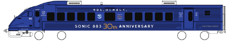 2025年4月20日、特急「883系ソニック」は運行開始より30周年を迎えました。これを記念し、現在883系ソニックの1編成に特別デザインの記念ラッピングを施し運行しております。