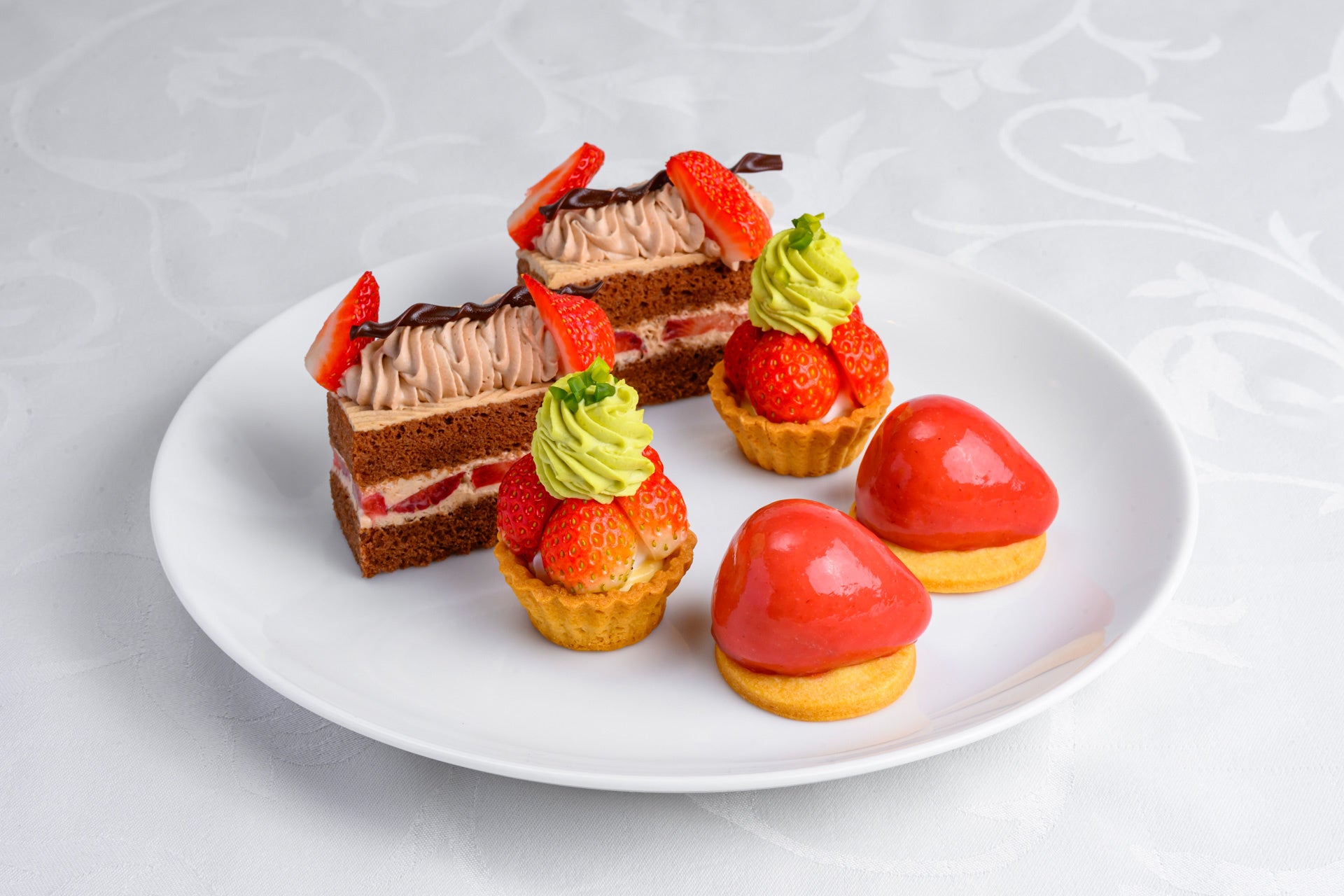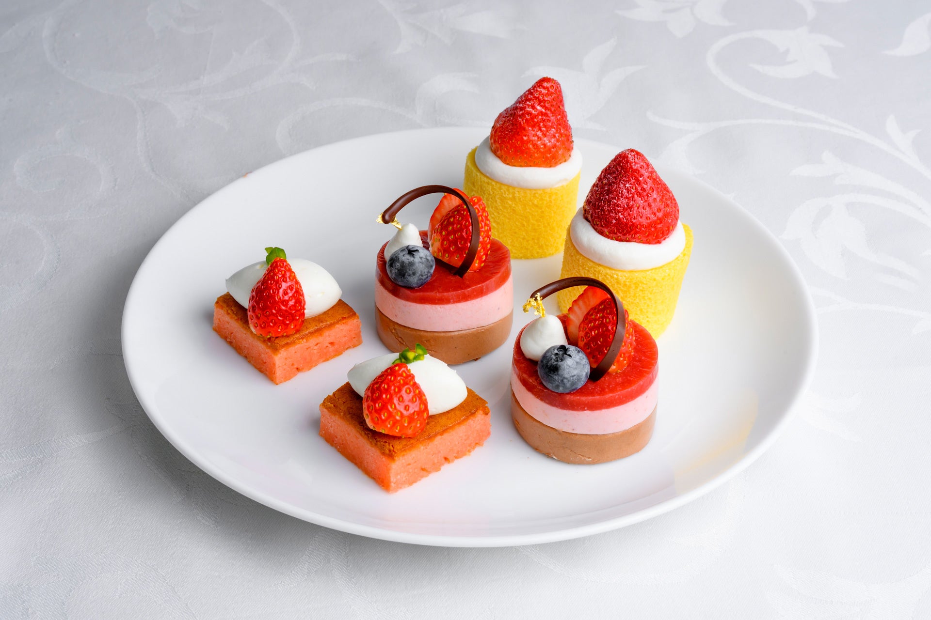 ホテル金沢のパティシエ・山岸が手がける、季節の素材を活かした繊細で華やかなスイーツ。今冬は"いちごのティーパーティー"をテーマにした珠玉のスイーツコレクションと、冬の金沢の味覚を活かしたセイボリーをご用意しました。甘酸っぱいいちごの香りと、雪のようにやさしい口どけが織りなす冬の午後に、心温まる優雅なひとときをお届けします。