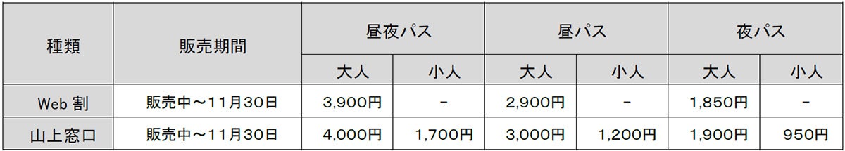 【料金】上記、夜パスまたは昼夜パスのとおり