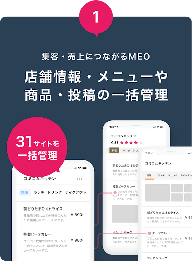 口コミコムは、国内外の口コミサイトを"もっと"売上に変える「店舗向け集客一元化プラットフォーム」です。