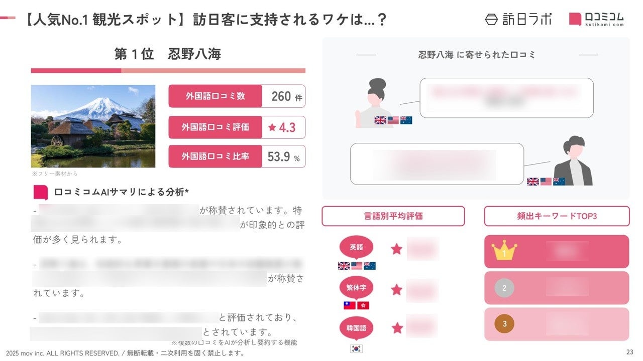 そのほか、言語別ランキングや口コミ分析の詳細は、調査資料をご覧ください。