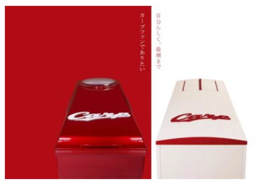 プロ野球球団としては初となる棺との公式コラボレーションとして、広島東洋カープの公式ライセンスを受けたオリジナルデザイン棺「カープ柩」を展示いたします。