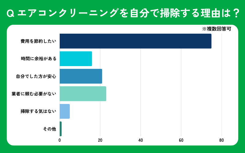 エアコンを自分で掃除している場合、その理由は何ですか?(複数回答可能)