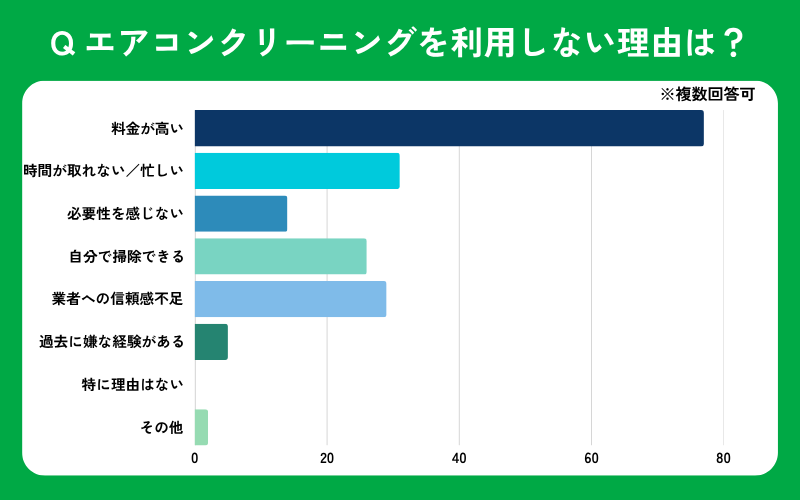 エアコンクリーニングを利用しない主な理由は何ですか?(複数選択可能)
