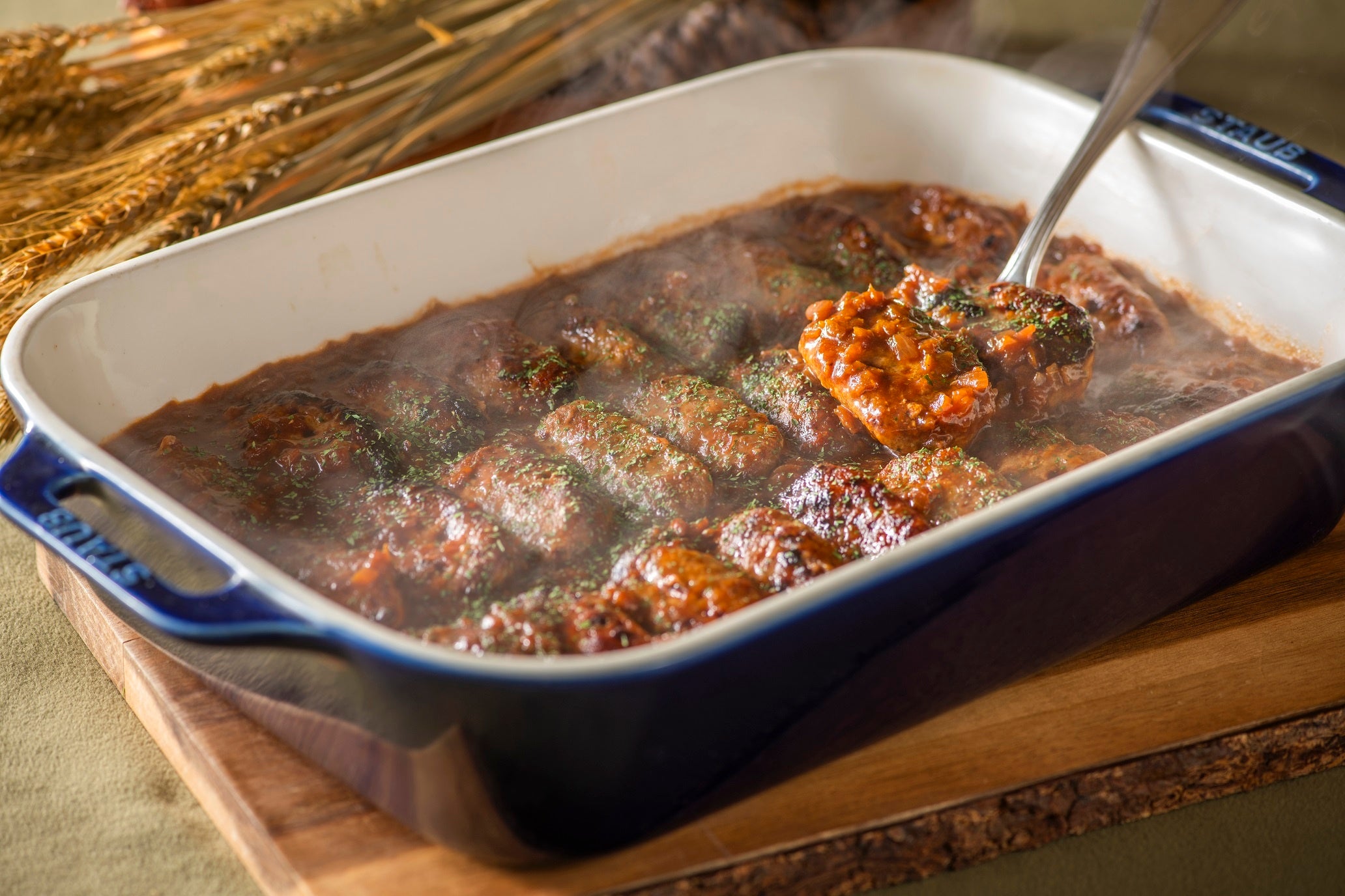 にいがた和牛をつかったハンバーグをビール煮込みにすることで柔らかくジューシーに。