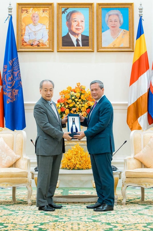 日本とカンボジアの友情をつなぐ一献 山口発のヴィンテージ日本酒「夢雀 MUJAKU」ー カンボジア王国 フン・マネット首相へ寄贈