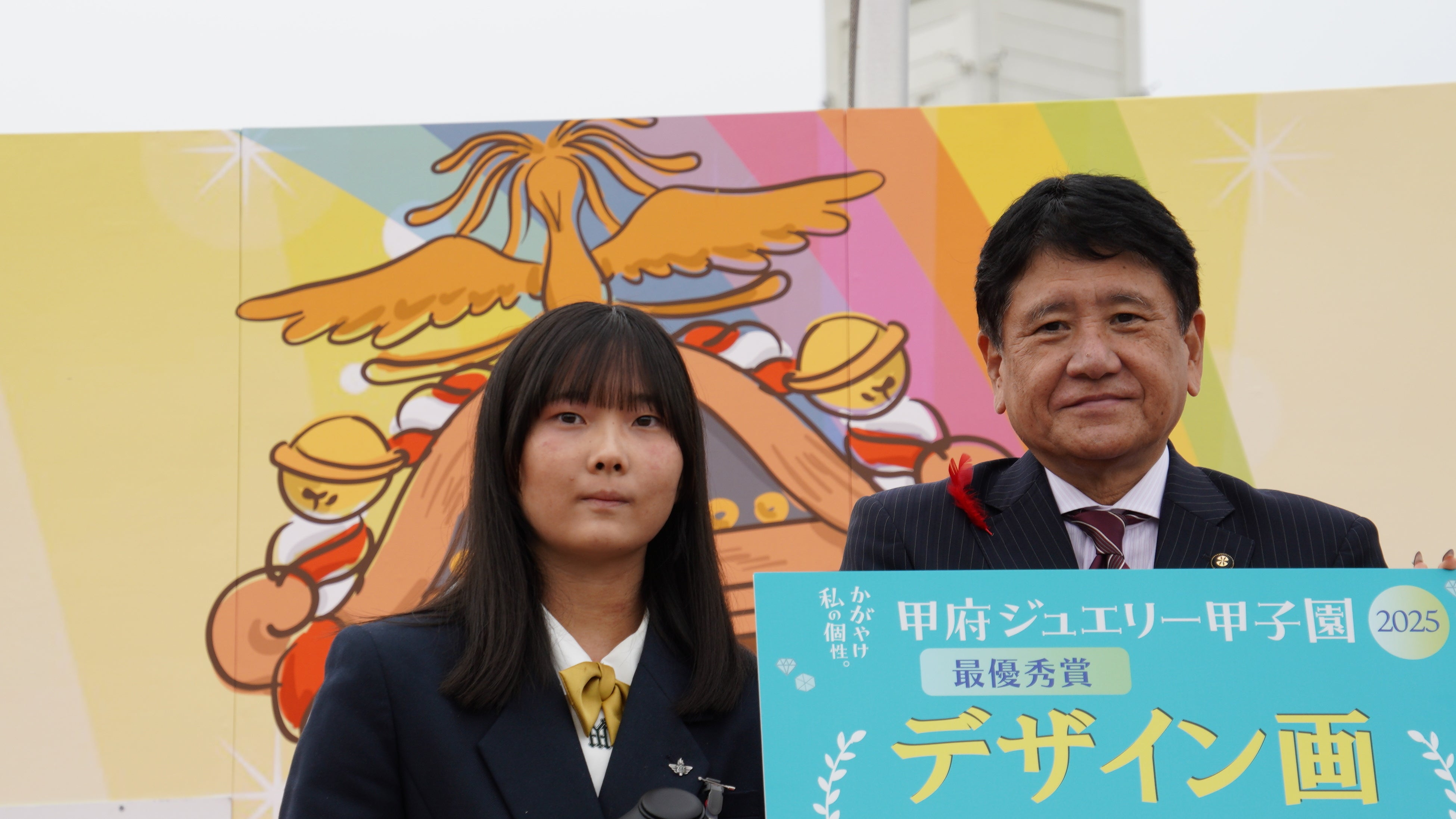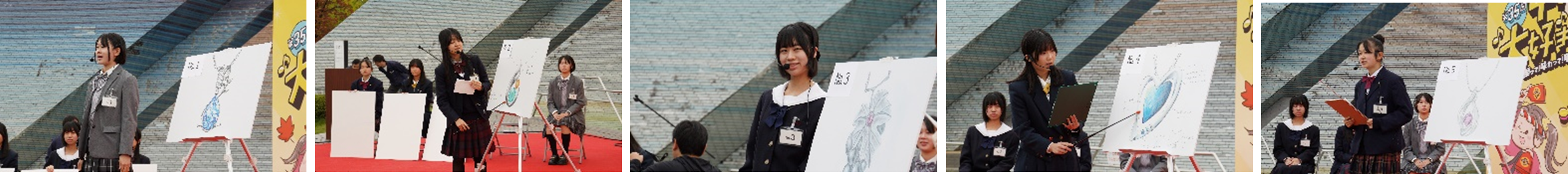 ■10月25日(土)に開催された「第35回甲府大好きまつり」には約52,000名が来場。その会場内では『甲府ジュエリー甲子園2025』が実施され、全国の高校生から389作品のエントリーが寄せられました。そこから選出された5名の高校生が決勝大会に進出し、ステージ上でプレゼンテーションを行いました。