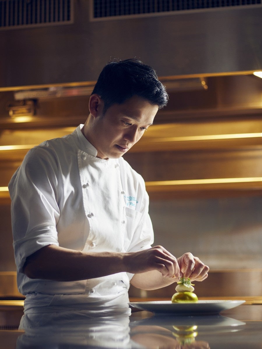 Chef Patissier 岩佐 祐佑1985年生まれ、鳥取県出身。関西のパティスリーで修行後、2010年に麹町エメ・ヴィベールに入社。2012年シェフパティシエに就任。エグゼクティブシェフ若月氏の右腕として星獲得に大きく貢献する。2017年若月氏と共にソンブルイユ開業メンバーとなり活躍。五感をすべて刺激する繊細なデザートで多くのファンを魅了している。
