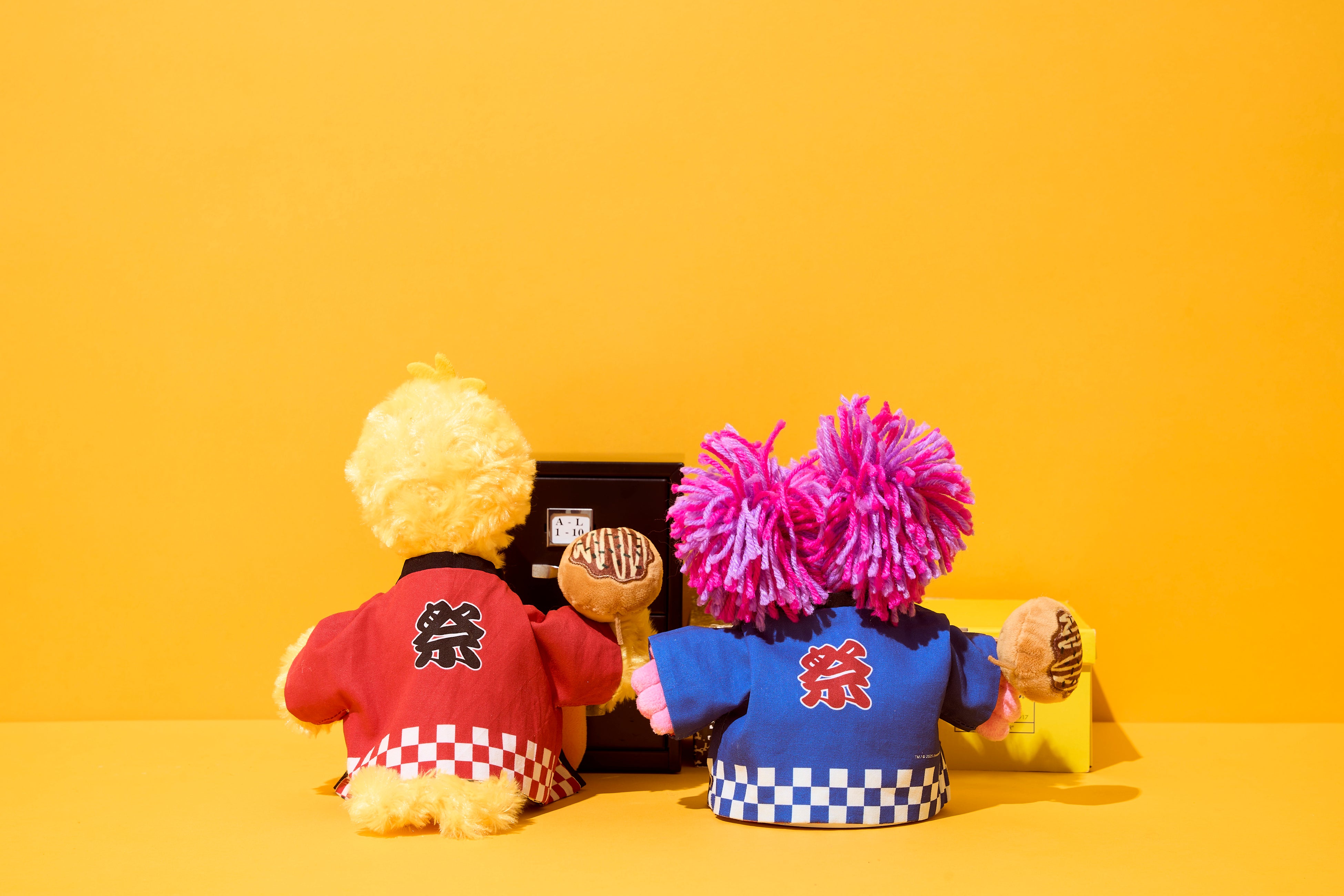 定番和柄の市松模様をあしらった、キャラクターたちが法被姿になりきれるコスチューム。胸元には「SESAME STREET MARKET」のブランドロゴ、背中には「祭」の文字をプリントし、キャラクターと一緒にお祭り気分を味わえるデザインに仕上げました。