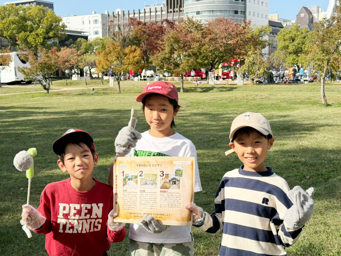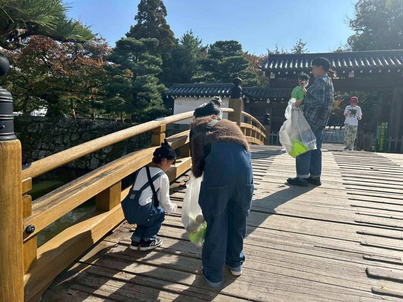 大手門跡、伏虎像、御橋廊下の3か所で、サンコーの掃除用品を使用してホコリや汚れの掃除、落ち葉やゴミを回収しました。参加者からは「親子で遊びながら学べて良かった」「お城を掃除することなど今までなかったので、子供たちにとってもとてもいい経験になりました」と嬉しい声をいただきました。